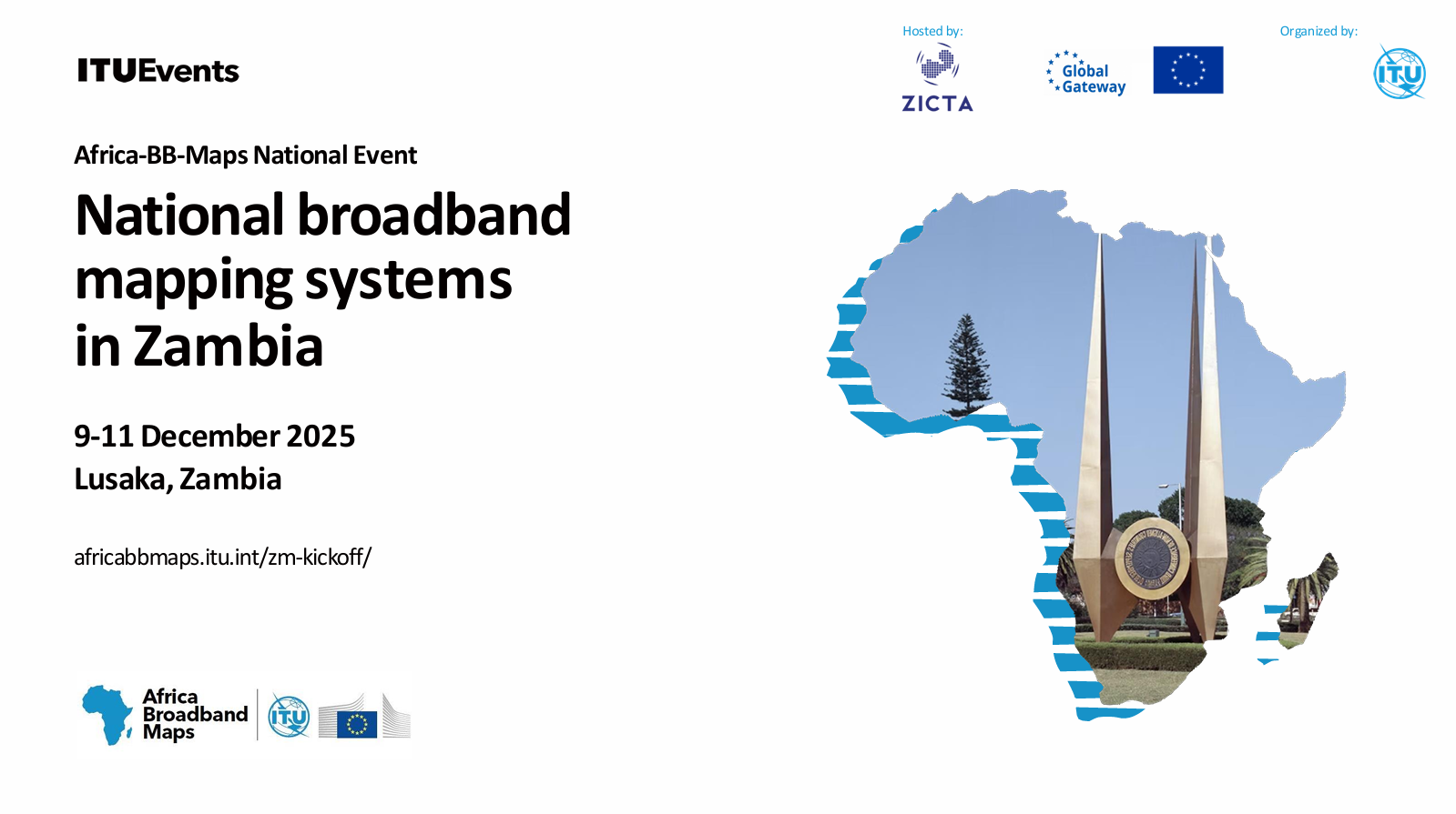 The Africa-BB-Maps National Event on National Broadband Mapping Systems in Zambia took place from 9-11 December 2025 in Lusaka, Zambia. It marked the launch of the roll-out phase of the project at the National level.